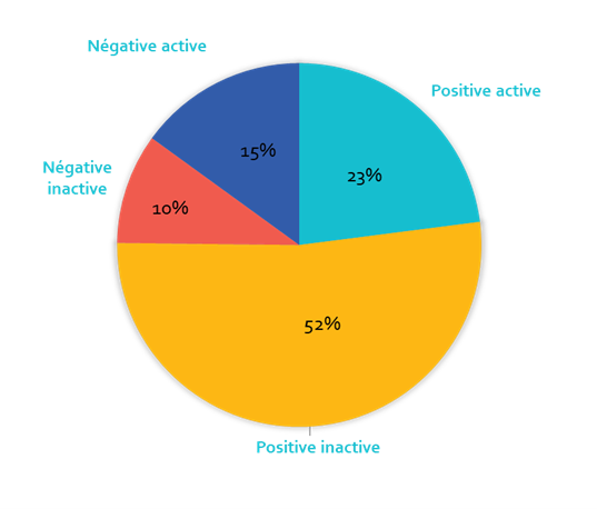 Respondents (time 1) reported feeling mostly positive emotions during their visit (75%). Fifty-two percent felt inactive positive emotions, such as relaxation; 23% active positive emotions, such as enthusiasm. Twenty-five percent felt negative emotions (10% inactive such as fatigue and 15% active such as fear). Visitors were more attracted to works with visuals.